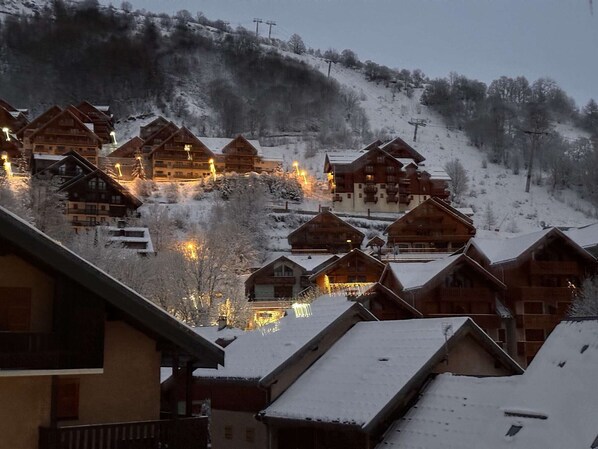 48 m² duplex apartment located in section A4 of the resort map, on the 4th floor (no elevator). SLEEPING ARRANGEMENTS: Living room: a sofa bed 1 bedroom on the ground floor: 1 double bed (140 cm) Mezzanine: two single beds (90 cm) and a bedroom with a double bed (160 cm) AMENITIES: Kitchenette with microwave, dishwasher, ceramic hob, electric oven, fridge/freezer, filter coffee maker, kettle, and toaster Living room with television, DVD player, and sofa. Bathroom: sink, shower, separate WC Non-smoking apartment. Sheets not provided, bedding with blankets. East-facing balcony. Pets not allowed. Ski locker. Shared parking (unassigned space). Garage available for rent. NO WIFI