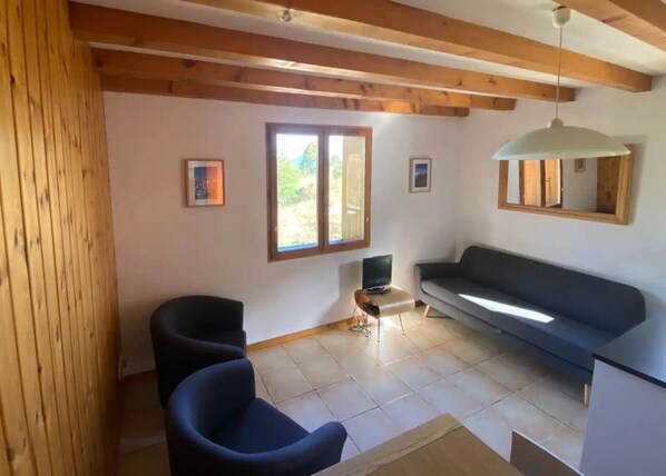 A single sofa bed is also located in the living room.