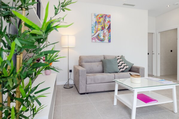 Choose from 1- or 2-bedroom apartments with access codes, air conditioning, equipped kitchen, built-in wardrobes, accessible bathrooms, bed linen, towels, TV, and a bright living room.