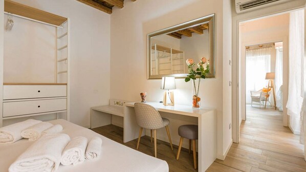 Perfect for couples of friends and families, this wide and modern apartment is very well located, just 2 minutes walk from the Arena. The unit comes with a living area with a fully equipped kitchen, 2 separate bedrooms area, each one with a private bathroom with the shower. A small balcony is a plus to relax drinking a glass of wine during summer days. (Pay attention: the property is located in a restricted traffic area. Recommended public parking: Piazza Cittadella).
