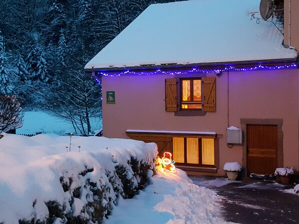 Nearby: 3 km away, Corcieux offers the nearest shops, a bakery, and a weekly market, as well as traditional restaurants for mid-range budgets. 18 km away, Gérardmer offers all kinds of activities (treetop adventure course, hiking, swimming pool, casino) and renowned events (Daffodil Festival in April, lake, Family Plus reception, ski slopes, and marked hikes). 30 km away, Le Hohneck invites you to discover the peaks of the Vosges Mountains. 56 km away, Colmar and the small Alsatian villages adorn themselves with their Christmas decorations for the end-of-year celebrations. Individual cottage in a detached house, adjoining another accommodation.