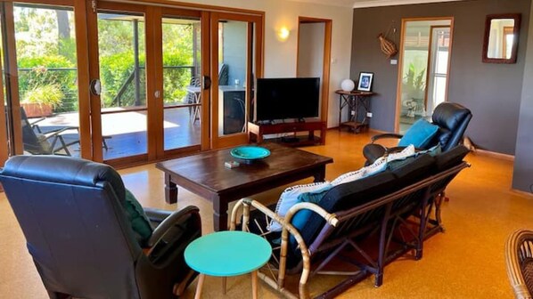 Kookaburra Dreaming ligger i blant innfødte trær og busker, og er et fristed i n��rheten av stranden. Et paradis for fugler og mennesker, det er oppkalt etter den utvidede familien av Kookaburras som bor i trærne og vil komme og bli matet hvis du velger. Med alle moderne innretninger har dette enkle huset alt du trenger for din egen drøm, i et gjemmested fra hverdagen. Orion Beach, koblet til alle de andre strendene, ligger en kort spasertur (400 m) unna, eller døs og les på det romslige dekket.