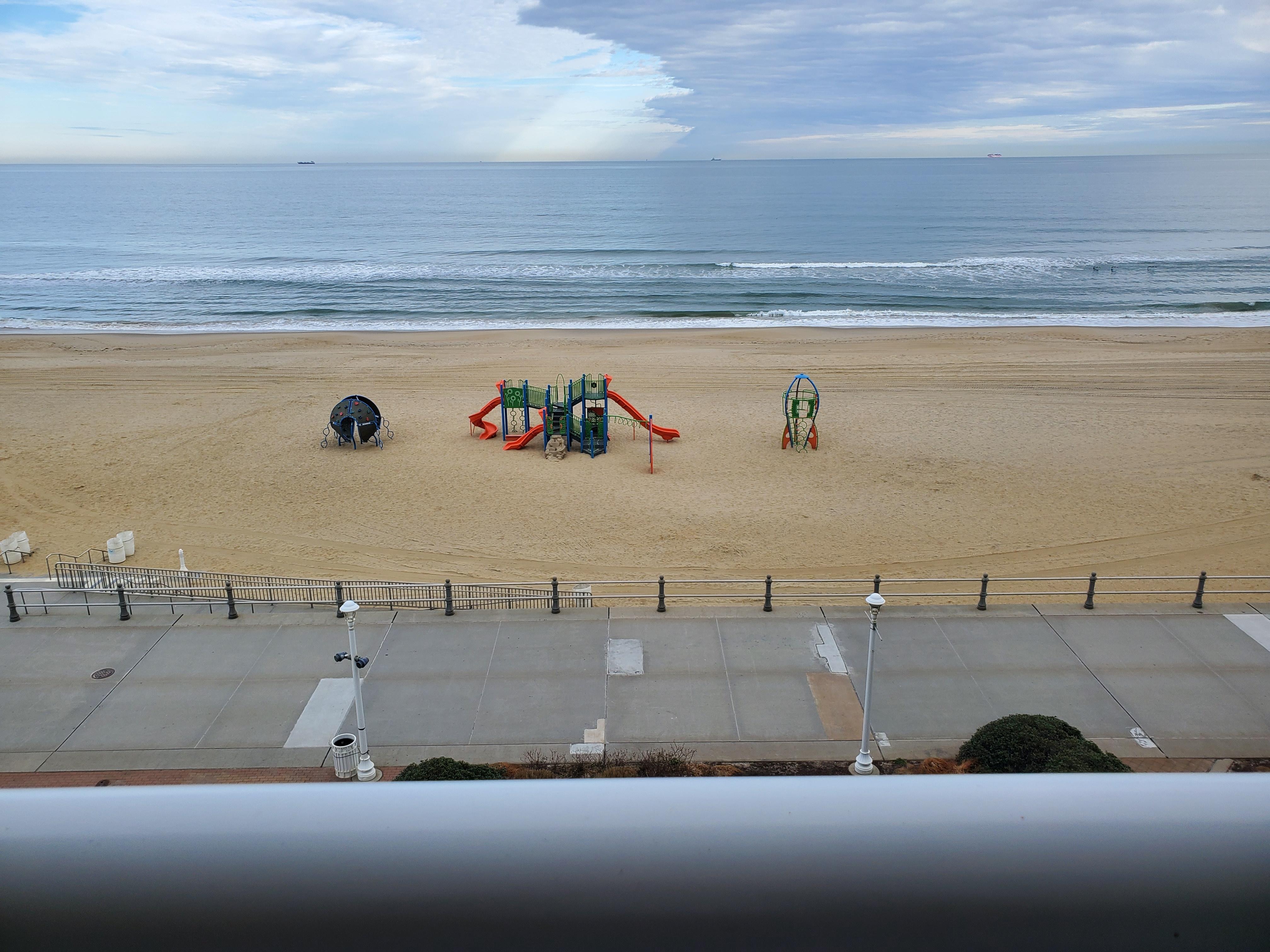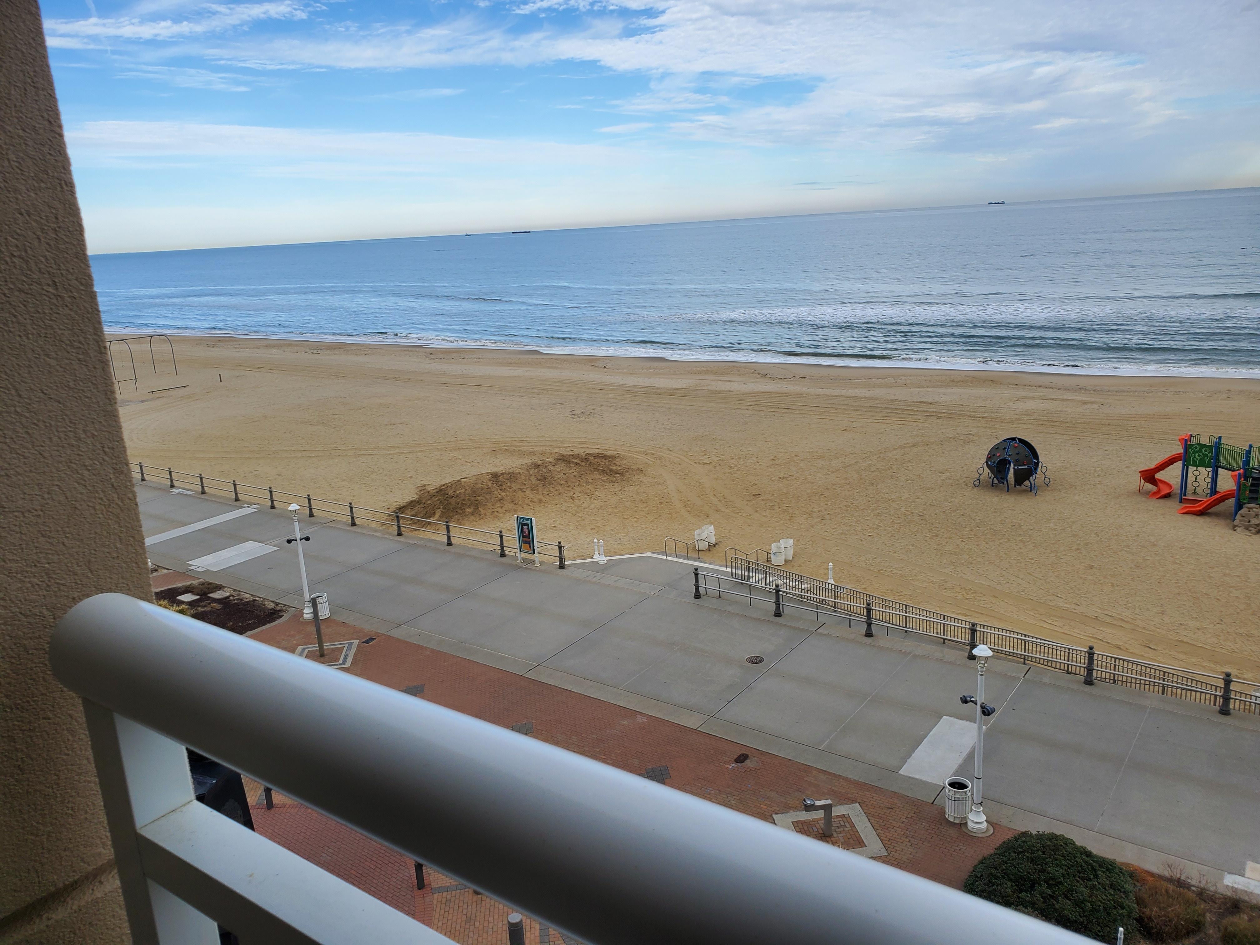 På stranden og med utendørsbasseng og beliggenhet nær Virginia strand Boardwalk