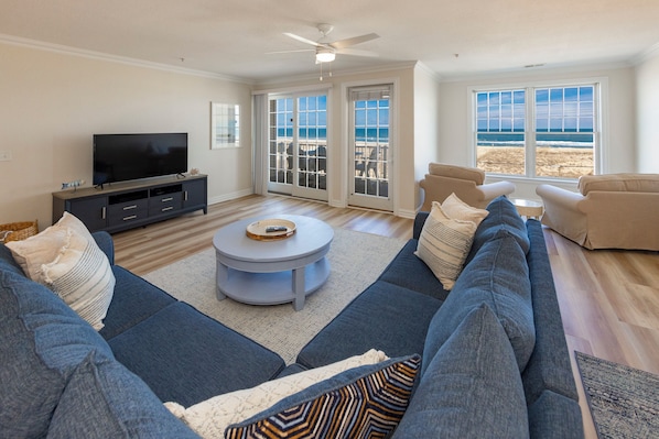 Welcome to Atlantic Dream, a relaxing oceanfront retreat that combines modern coastal style with the relaxing ambiance of beachfront living. Enjoy breathtaking views of the Atlantic Ocean from your private balcony. Just steps away from the surf and sand, this spacious three bedroom, two bath condo with 2,000 square feet of living space is ideal for families, couples, or small groups seeking a refined seaside getaway.