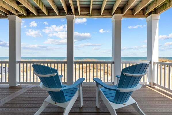 Surfside delivers oceanfront luxury in the heart of Sandbridge—built for big families, group getaways, and unforgettable beach days. Soak in panoramic views from walls of windows and multi-level decks, or enjoy the private pool, shaded hot tub, and fully equipped cabana with TV, fridge, gas cooktop, and grill.