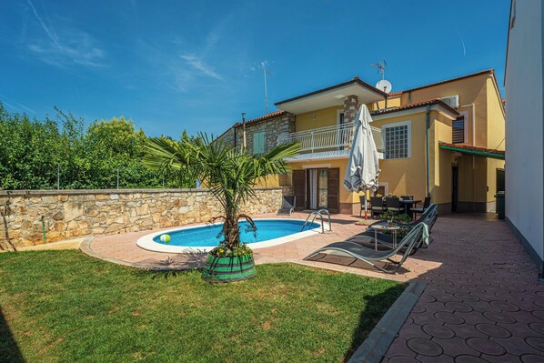 WiFi available free of charge. Outdoor shower, sitting set, sun loungers and parasol by the pool. Private parking for two cars at the house.
