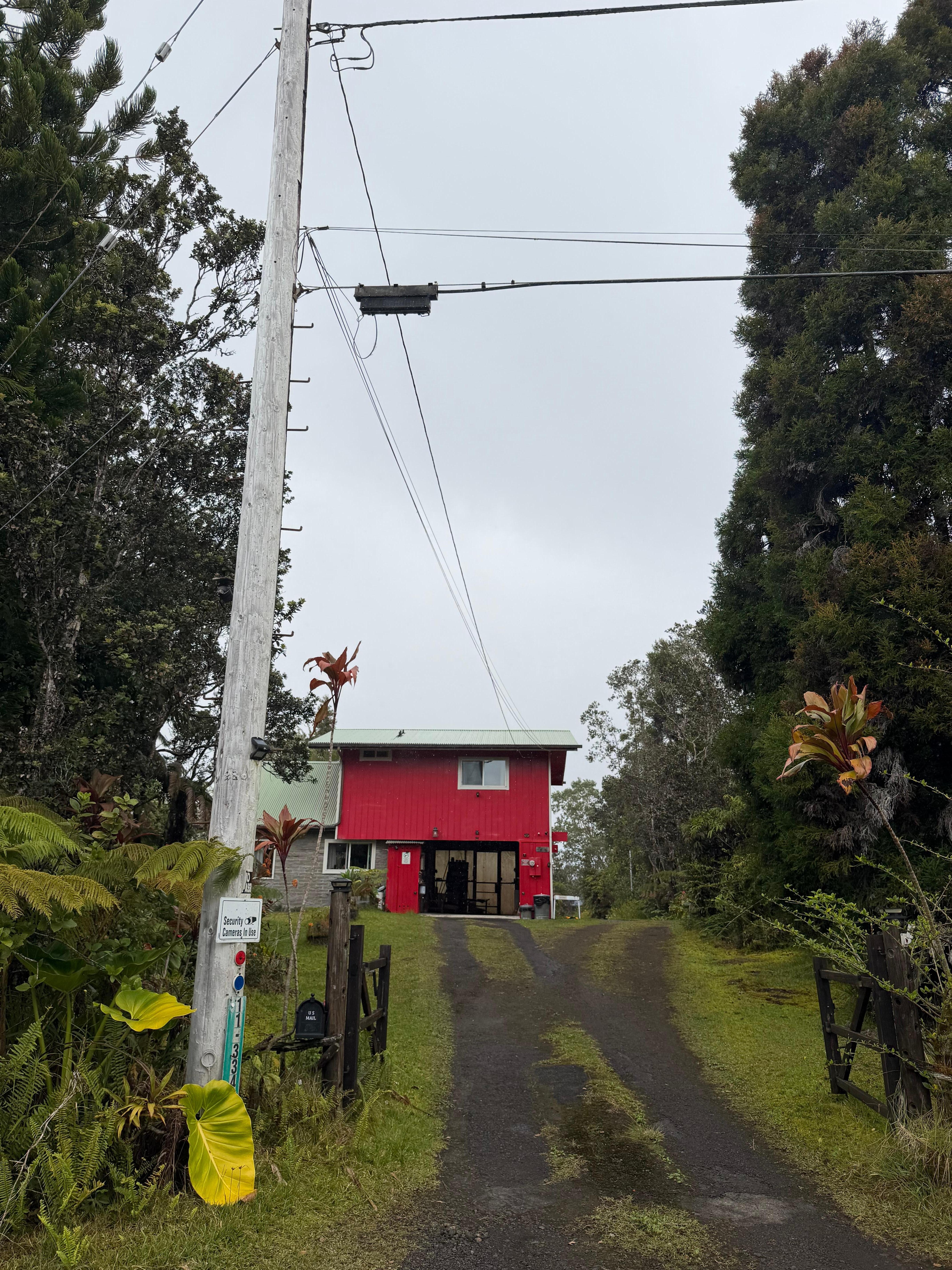 Gammel, rustikk hytte i regnskogen, som ligger 5 miles til Hawaii Volcanos National Park.