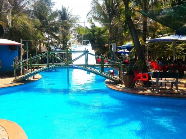 Ved stranden og med utendørsbasseng