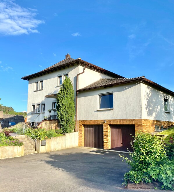 The apartment has a view of the village and of the directly adjacent forests and meadows. The apartment is located in an absolutely traffic-calmed area directly on a signposted bike path.