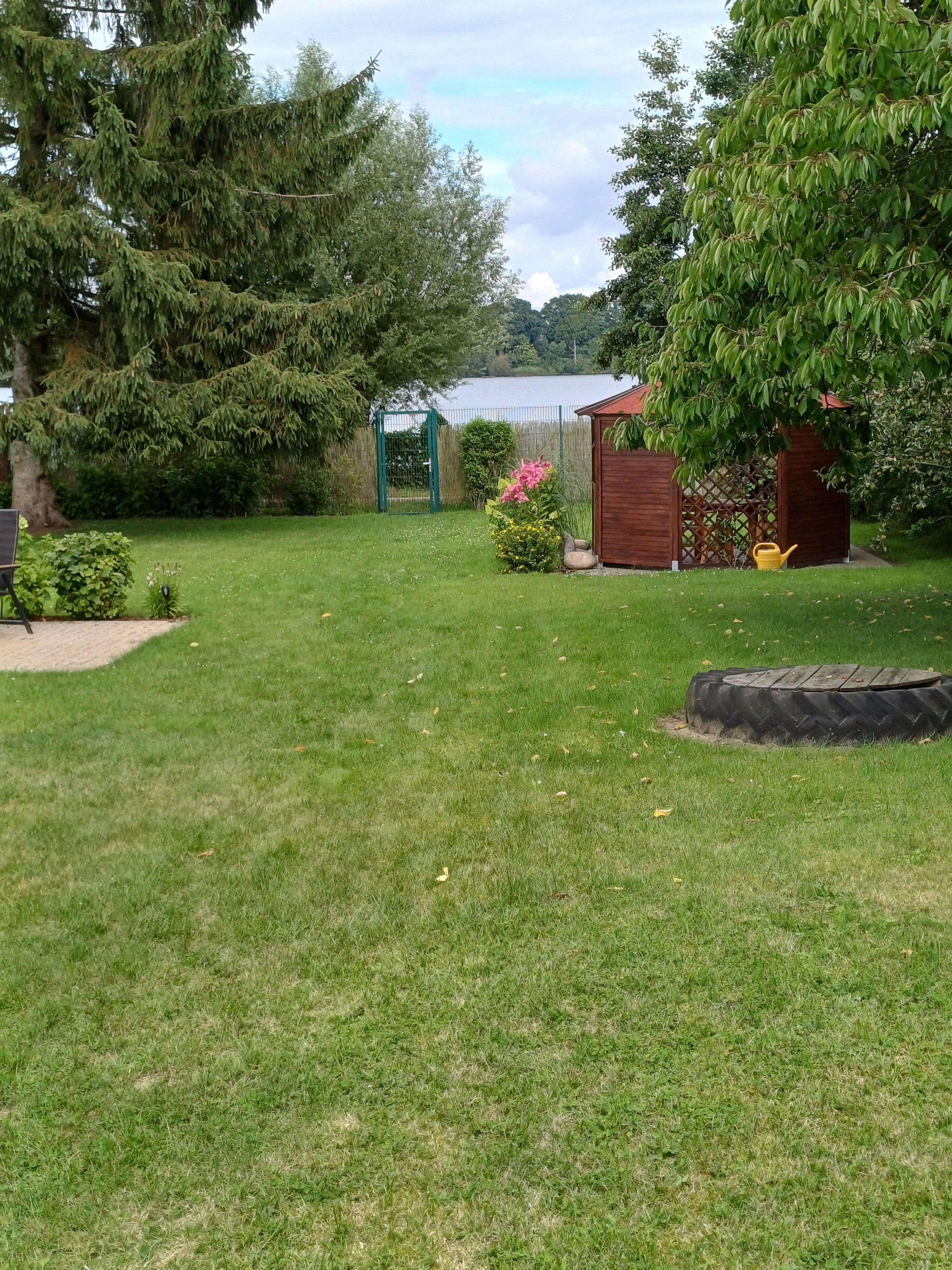 Direkte ved innsjøen Tiefwarensee ligger to ferieleiligheter for 2 personer i hvert sitt separate feriehus på eiernes ca. 1700 m² store boligeiendom. Tilgang til innsjøen med brygge og badestige er kun adskilt av en sykkelvei. Den sentraloppvarmede, ca. 35 kvadratmeter store leiligheten ble omfattende renovert og fullstendig ommøblert i 2021. Leiligheten har stue (polstret sittegruppe, flatskjerm-TV, radio, spisebord), et lite kjøkken (elektrisk komfyr, kjøleskap, diverse små kjøkkenapparater), et soverom (dobbeltseng) og et bad (dusj, WC). Det er også en møblert terrasse, grill, parkeringsplass, solsenger, en strandstol og rikelig med sitteplasser og solsenger på den store eiendommen. Totalprisen inkluderer sluttrengjøring, sengetøy, håndklær, vann- og energiforbruk. Betales på stedet: Spa-avgift, robåt (hvis ønskelig) 10 EUR/dag. Kjæledyr er ikke tillatt på denne eiendommen.