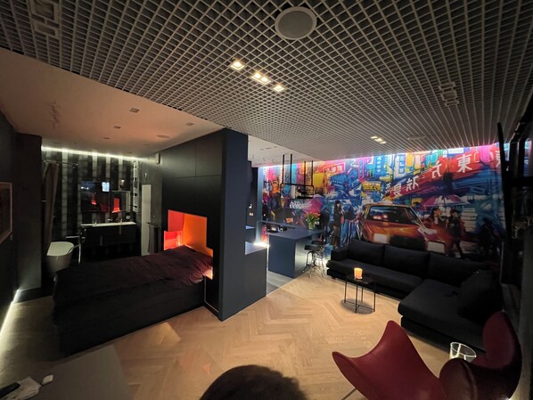 Uber Cool Apartment which will take in to world of graffiti. Unique layout for travel, work - enjoy superb location @ Browary Warszawskie which offer great restaurant, bars and nightlife.