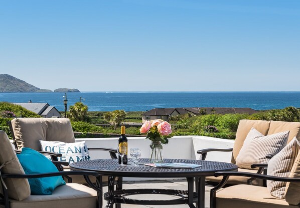 There is plenty of off-road parking in the yard and alongside the house. A large patio area leads from the main house and also has a great Jamie Oliver garden furniture set and BBQ. The views towards the sea are just magnificent and you are sure to create many happy family memories from your stay at Skellig Bay View House.