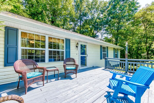This roomy mountain home has everything you need for a relaxing, family-oriented vacation. The living room offers comfortable seating as you gather with friends or family to stream on the smart TV or just talk about your day. You will love whipping up your favorite gourmet meals in the large, fully equipped kitchen. At the end of a fun-filled day, snuggle into deliciously comfortable beds. Other highlights include your own washer/dryer and gas grill. Enjoy the spacious deck anytime of the day nestled among trees. Enjoy the sights and sounds with a sunrise coffee, or take a short walk to beautiful Lake Junaluska to enjoy a glorious Smoky Mountain sunset.