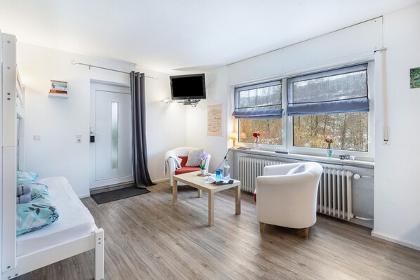 The apartment provides 3 sleeping places, with an extra bed available for an additional person upon request.