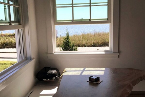 The cottage was built in 2018 and is incredibly cozy with unobstructed views of Mayo Beach and Wellfleet Harbor. It also has excellent privacy and high-end amenities. The house includes central heat and air conditioning in each bedroom as well as the living room. It has a modern kitchen with a beautiful dining nook.