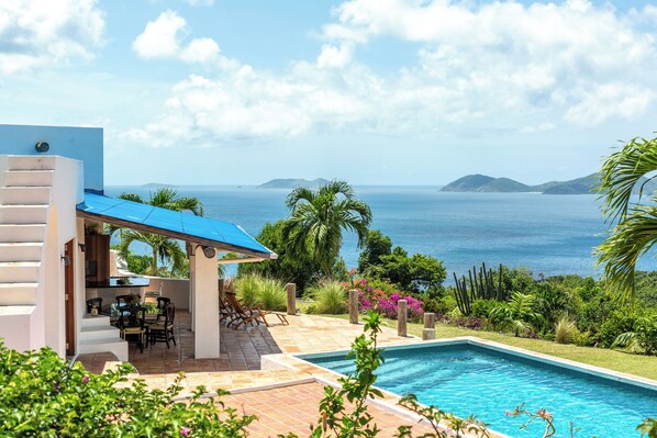 BVI VILLAGE bohemian Mediterranean-style hilltop villa & pool for relaxing times