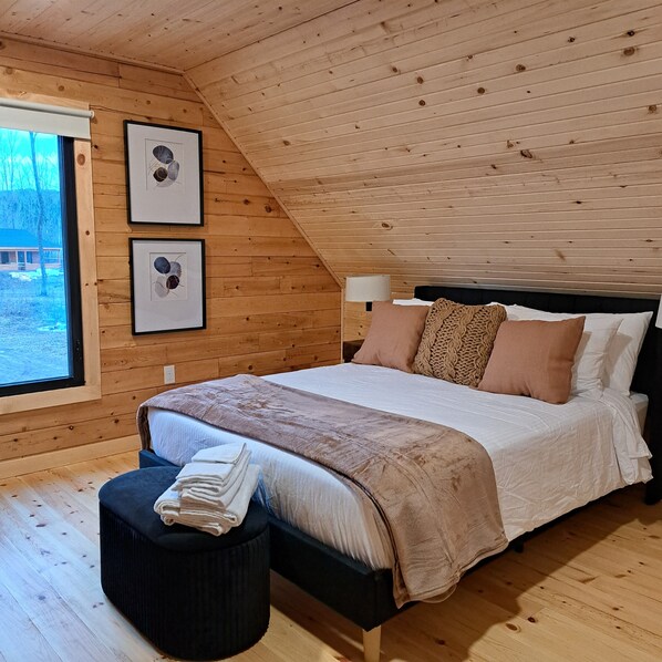 Nestled amidst private hardwoods with 200 feet of lake access, our cottage invites you to unwind in the year-round hot tub or enjoy a BBQ on the large front deck, offering panoramic views of the lake and surrounding hills. The property features lakefront access with a shared lake house, deck, and dock, perfect for bringing your canoes or kayaks. Stay warm on cool evenings with the cozy gas stove, and enjoy modern amenities including stainless steel kitchen appliances, a washer and dryer, high-speed fiber-optic WiFi, and SmartTV service.