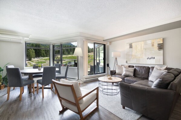 This bright condo is located looking out over the base of Whistler and Blackcomb in the main Whistler Village!