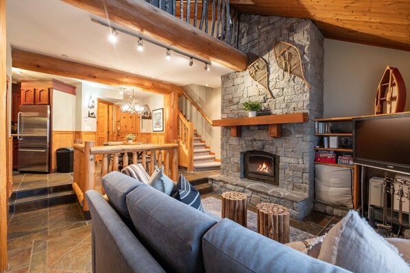 This stunning 2-bedroom + loft suite embodies a ski chalet vibe with its unique log post and beam design, custom-made cabinets, and open-concept living/dining area. The kitchen features stainless steel appliances. Stay in one of the original Whistler ski lodges, an exclusive building with only seven suites, offering a unique and unforgettable experience. Enjoy breathtaking mountain vistas from your private hot tub and unwind in front of a natural stone fireplace after a day of skiing. Located in the heart of Whistler Village, you're just steps away from the ski slopes and exceptional dining and shopping.
