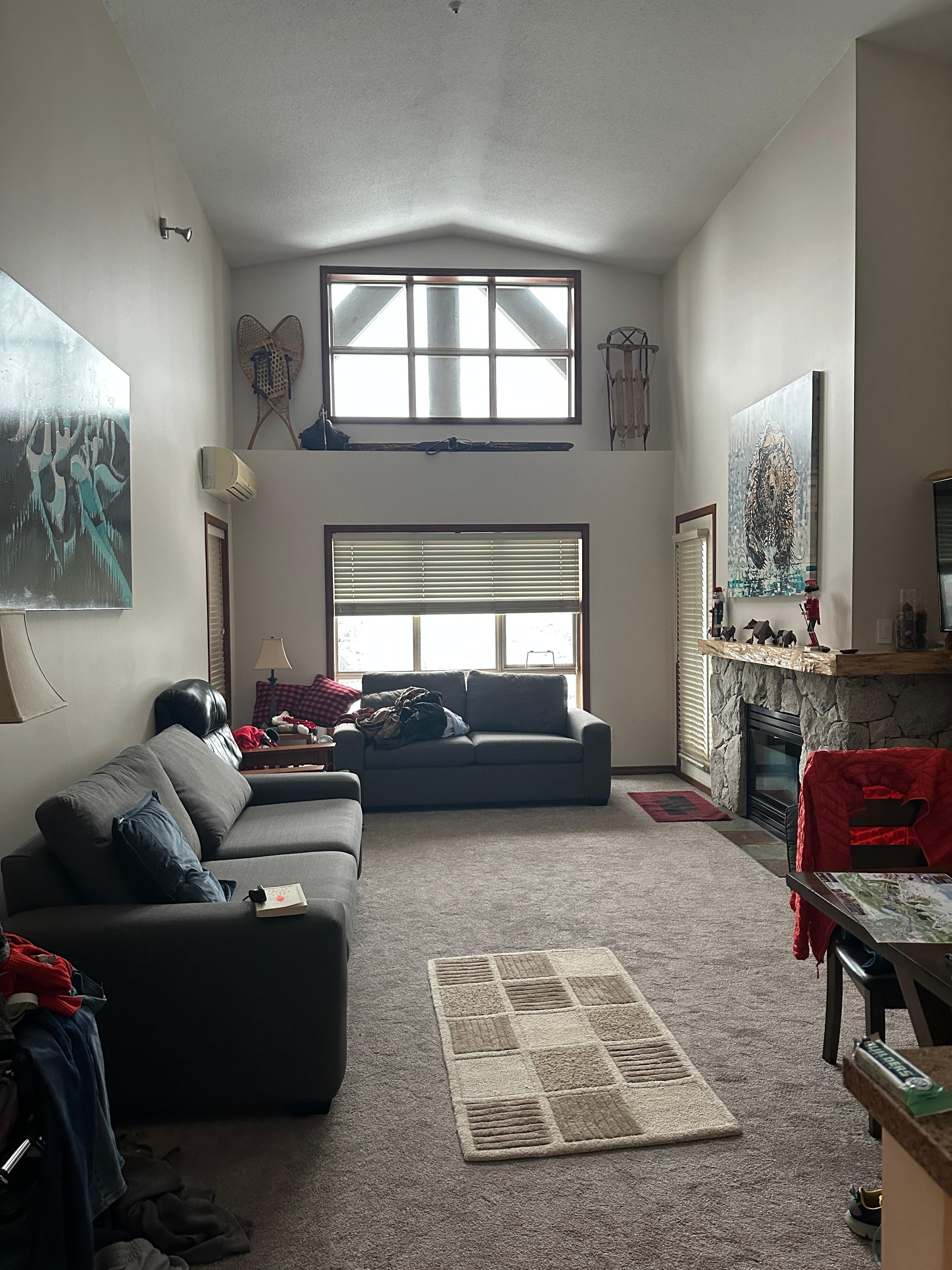 -Ny kunstverk "Blueberry2Blackcomb" -giclee-trykk fra vår favorittartist (Andy Anissimoff fra Squamish). Dette slutter seg til verkene "Run" og "Black Tusk" -giclee-utskrifter. -Flyttet treskulpturen "The Skier" (Alan Boileau) til den signatur høye veggen. Alans stykke stjeler virkelig showet! Stedet vårt ser bra ut og klart for den nye skisesongen !!!