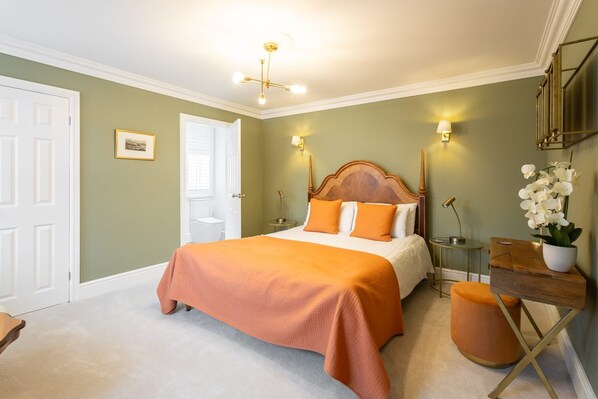 The second floor is home to the first bedroom at Devereux House. This space boasts a comfy king-size bed, along with a walk-in wardrobe, dressing table, plus an ensuite shower room. You can expect plush bedding and luxury bed linens so you can get a restful night’s sleep during your stay.