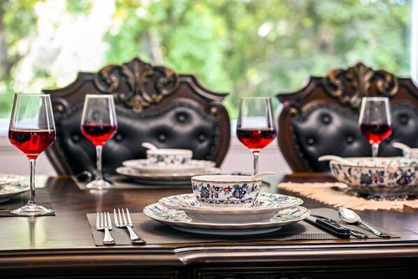- Large dining table for group meals & celebrations