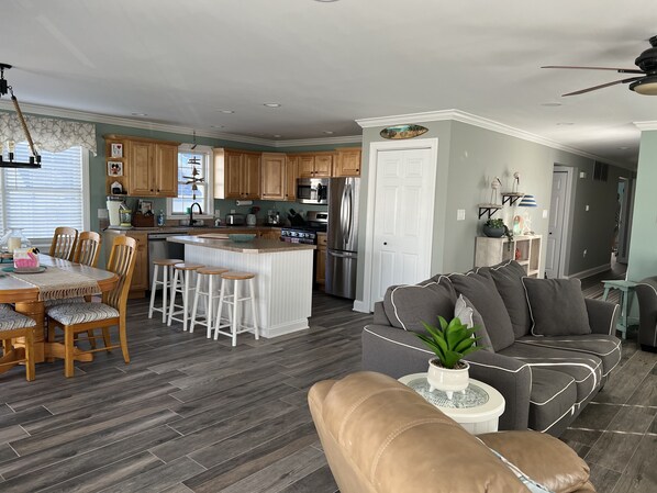 We just loved the decor and how good it felt to come back from the beach, nice clean and cool. The house has everything we needed in the kitchen, a great garage to store beach items and even catch a work out. Great porch to hand at on to catch the breeze and begin and end each day. The home was very comfortable and a plus to have parking!