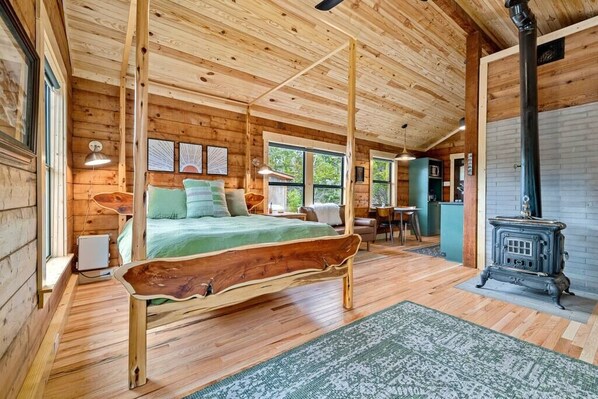 The Three Graces cabin was a beautiful staycation for myself and my dog! Immediately upon check-in I asked if I could extend my stay. It was so cozy and comfortable, especially during the cold weather. There was a digital thermostat inside in addition to the gorgeous antique wood burning stove, which was such a beautiful touch and added such an ambiance to the night. The hosts even generously provided a few logs to use for the indoor stove and the outdoor fire pit. You can tell that the owners have an eye for art and design style as the whole aesthetic of the cabin was carefully thought out. The bedding was so lovely that I even messaged the hosts and asked where they got their line sheets and knitted blanket from, as I hope to replicate the experience at my own home! I also loved the oversized stone shower. There is a ton of privacy— although the cabin is on 10 acres, you cannot see a single other structure from it. My pup and I also enjoyed hiking around the property and saw tons of herons, which were striking! The hosts were even gracious enough to mail me a forgotten item after I left. I would totally stay again. 11/10!