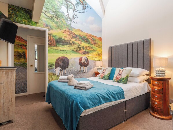 Bad: Med dusj over badekar og toalett .. Nattoppvarming, elektrisk varmeovn (på bad), strøm, sengetøy, håndklær og Wi-Fi inkludert. Lite bibliotek med bøker .. Privat parkering for 1 bil (noen meter nedoverbakke). Røyking forbudt.. Har du lyst på et koselig, romantisk avbrekk i innsjøene? Gå mot Stable Nest i Bowness på Windermere med det høye hvelvede taket, og bare en kort spasertur fra bredden av innsjøen Windermere.