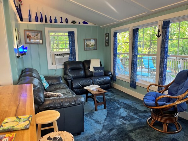 Været var perfekt! Kule netter og varme dager! Våre favoritteventyr under oppholdet var å se beveren tidlig på sjøen; fange mye fisk; kajakk; steke marshmallows på leirbålet om natten; svømming og selvfølgelig bare slappe av i svingen på verandaen! Plasseringen er flott; gangavstand til byen. Med alle de morsomme tingene å gjøre her på hytta og bukten, måtte vi ikke forlate! Vi vil gjerne komme tilbake igjen!