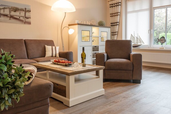 Den moderne rullestoltilpassede leiligheten har plass til opptil 4 personer og har egen inngang. I 100 m² leilighet er det 3 rom, som er fordelt på følgende måte: 1 stue med integrert kjøkken og to soverom. Ovnen er tilgjengelig for rullestolbrukere. Badet er utstyrt med en dusj på 1,5 mx 1,5 m. Toaletthøyden måler 48 cm og er utstyrt med en brakett. Dørene er 100 cm brede .. En rampe til inngangsdøren og en parkeringsplass foran døren er tilgjengelig. Terrassen ved siden av leiligheten inviterer deg til å somle.