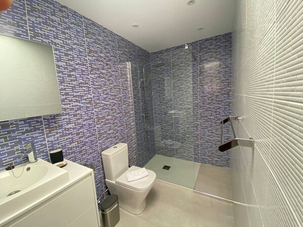 On the lower floor you will find a modern and comfortable living room, very bright and with Smart Tv. The living room has a separate dining area and has direct access to the pool which is an advantage if you are travelling with children as they can be supervised at all times. On this floor you will also find an independent kitchen fully equipped with modern appliances and a very complete kitchenware for those who love cooking.