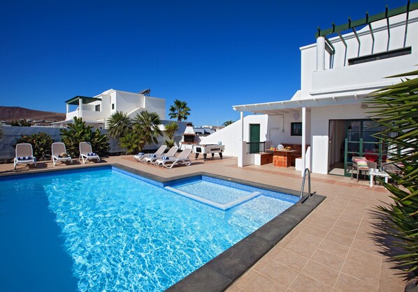 Denne stilige moderne 3 soverom, 2 bad villa med privat oppvarmet basseng (oppvarmet i vintermånedene) sover opptil 6 gjester.