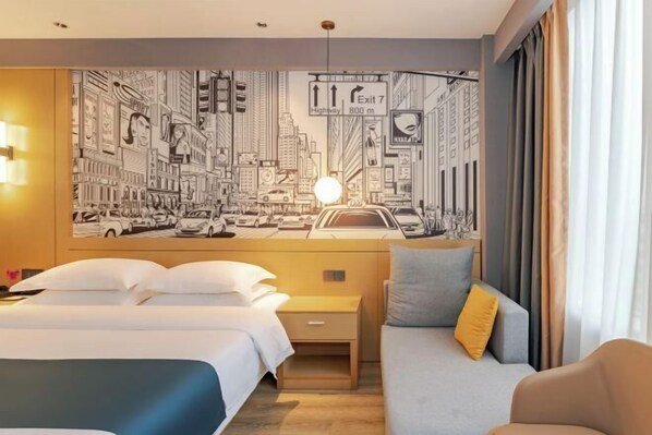 Åpne alle bildene av Yiyue Deluxe Family Room (Two Extra-Wide Double Beds+180° Skyline View+Private Tub)
