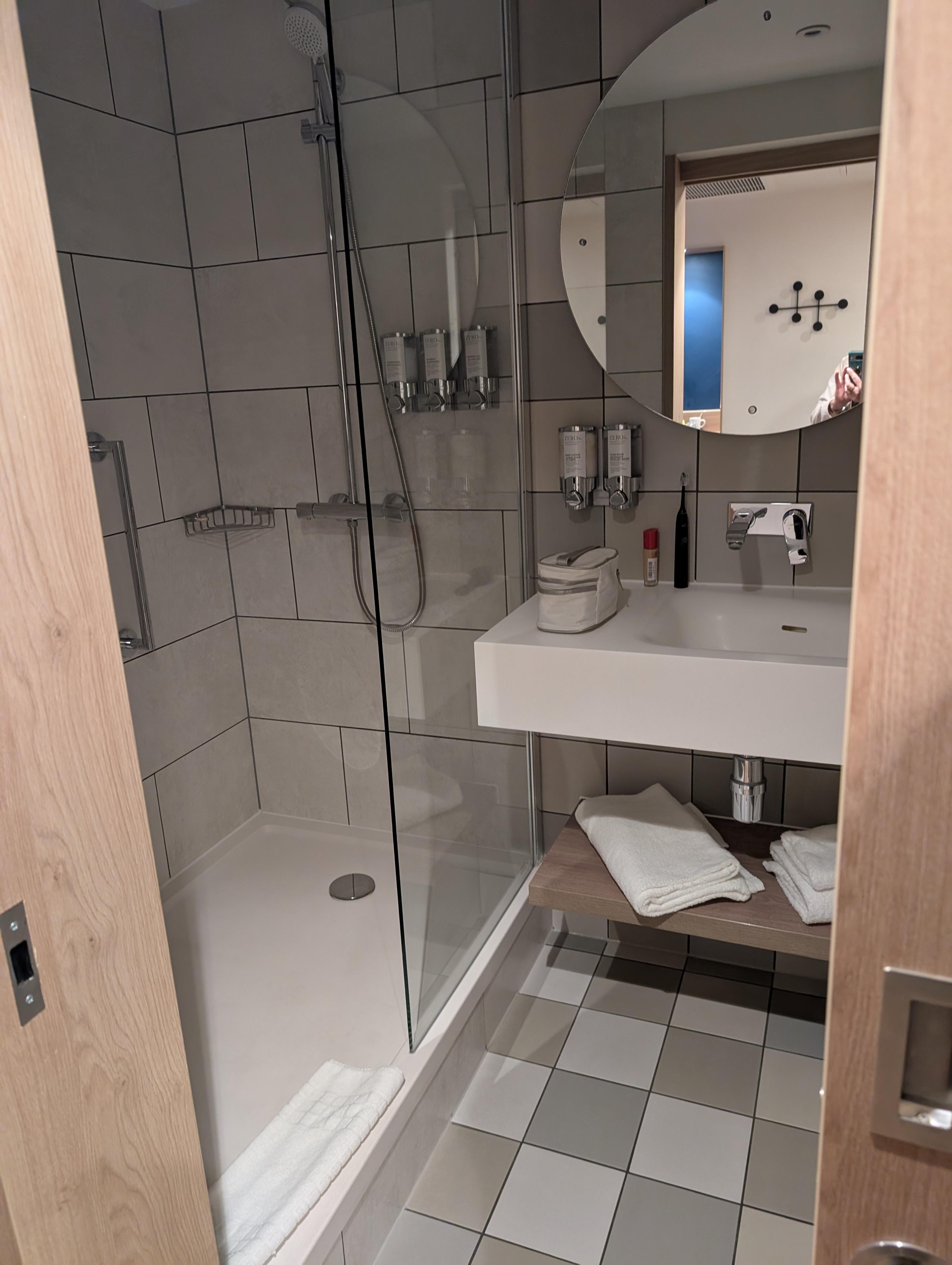 The room was very modern and clean and excellent size with all the amenities tea/coffee, hairdryer, safe etc