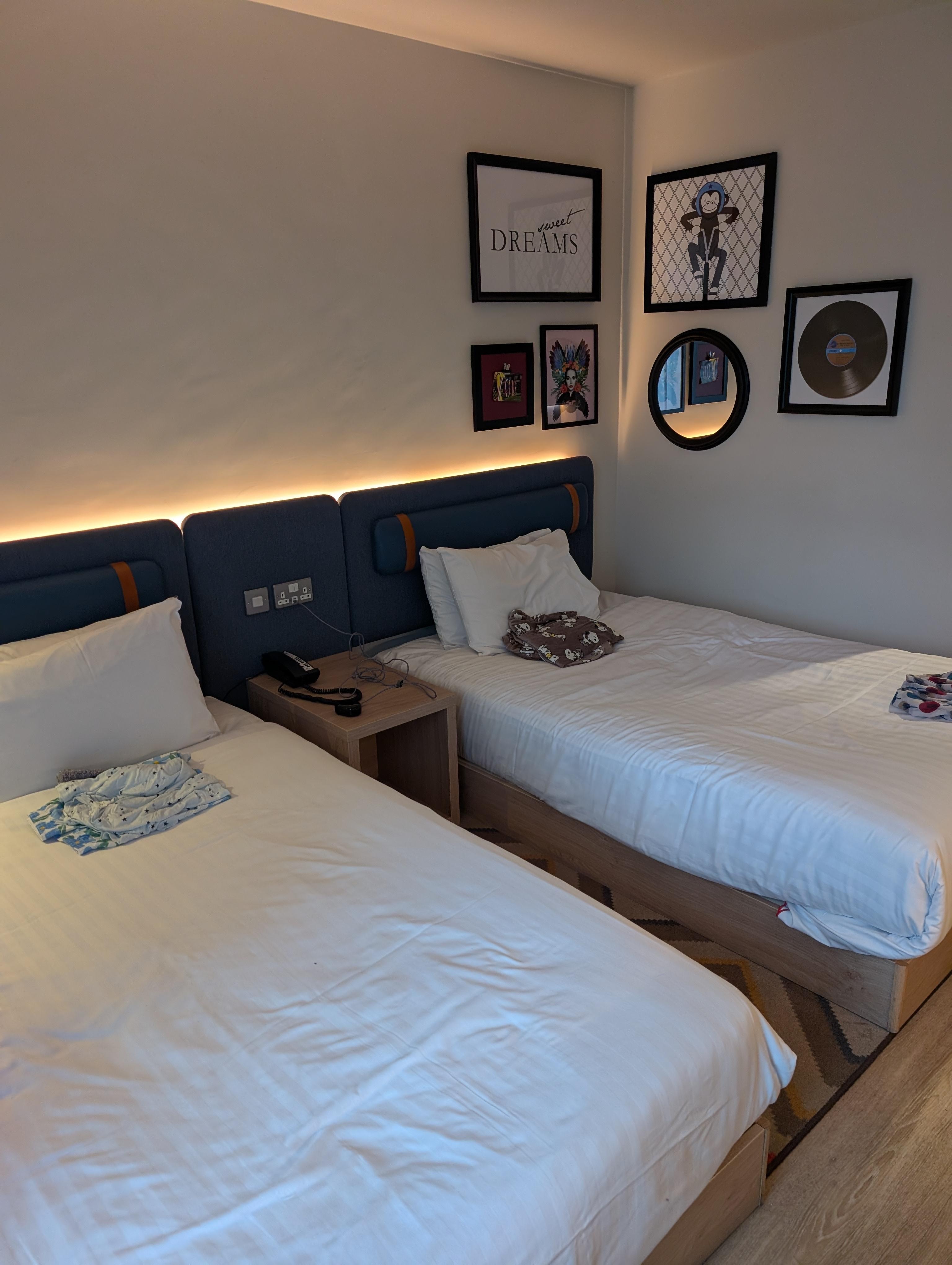 Room was lovely & clean, had a twin room & both beds were small doubles.
