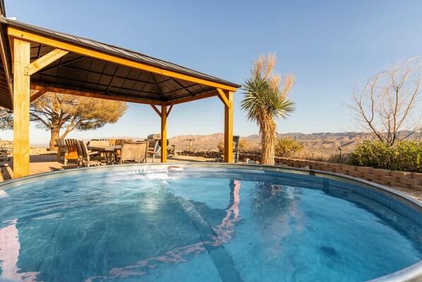 ☆Nestled on top of a mountain, with spectacular views, Surrounded by boulders and full of wildlife, this spacious luxury 4 bedroom 2 bath Villa is the ultimate spot for friends and family gatherings, overlooking the spectacular mountains range of Joshua Tree National Park •Extreme Privacy •Only 15 min to Joshua Tree town •10 min to Pioneertown •5 Mins to stores and restaurants •Surrounded by beautiful Boulders •Fully Equipped Kitchen •Outdoor Jacuzzi •PATIO •BBQ, Firepit and more...