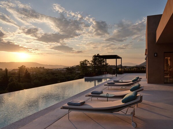 With a view of the Ionian Sea, the villa Astrea with step-free interior in Zakynthos Town is perfect for a relaxing holiday. The 270 m² property consists of a living room, a well-equipped kitchen, 4 bedrooms and 5 bathrooms as well as 5 additional toilets and can therefore accommodate 8 people. Additional amenities include high-speed Wi-Fi (suitable for video calls) with a dedicated workspace for home office, a TV, air conditioning, a washing machine, a dryer as well as beach/pool towels. 2 high chairs and 2 baby cots are also available. This villa features a private outdoor space with a pool, garden, terrace, barbecue, and outdoor shower.