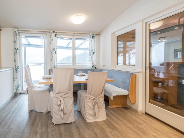 Treat yourself to a magical holiday in this spacious apartment amidst the stunning Alpine scenery. From the covered balcony, overlook the mountains with a cup of coffee and fresh bread rolls (sandwich service available). The large living room is equipped with 2 cosy sofas, one of which can be transformed into a bed for 2. The authentic stove provides warmth and atmosphere when you get together after an active day in the mountains