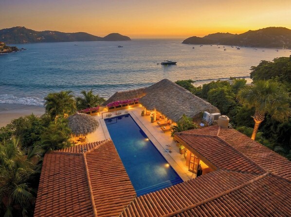 Indulge in unparalleled luxury at Casa Quixote, one of the few exclusive beachfront homes in Zihuatanejo. This tropical paradise offers breathtaking ocean views, direct beach access, and four elegantly designed bedrooms. Each bedroom features an ensuite bathroom, a comfortable king-sized bed, a private kitchenette, and panoramic ocean views. Experience the ultimate beachfront getaway, where opulence meets tranquility, and create cherished memories that will last a lifetime.