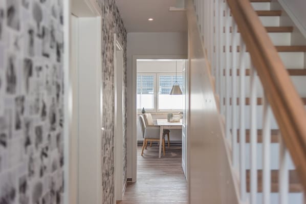 Kom inn og la den maritime teft trer i kraft. Leiligheten ligger på første Gulv, og takket være den perfekte romoppsettet, gir nok plass og plass for hele familien. Frieslander opprettet en ny leilighet i 2019 i et attraktivt nytt boligkompleks med fire hus. Valgte hjemmetilbehør gir ditt feriehus en koselig atmosfære og en individuell karakter. Farge aksentene sikrer ro og avslapning, akkurat tingen for ferien. I Friesländer finner du et åpent kjøkken, fullt utstyrt med alt kjøkken- og forbruksutstyr. Apparater som oppvaskmaskin, mikrobølgeovn og kjøleskap med frysere er også inkludert. Spisebordet eller den komfortable hjørnesofaen inviterer deg til å sosialisere deg. Å spise frokost ute eller nyte den friske sjøluften om kvelden - balkongen med utsikt over grønne omgivelser og i horisonten til Bodden, inviterer deg til å somle. Hvis du er heldig, vil du også se kveldskraneflukten fra balkongen om høsten. Du kan definitivt høre det. Stå godt uthvilt om morgenen og start dagen godt uthvilt - sengene av høy kvalitet sikrer en dyp og avslappende søvn. The Friesland in Zingst - et sted å slappe av, ligge på strandstolene, gå eller sykle. Leiligheten har en parkeringsplass og et låsbart skur der du også kan lagre og lade syklene. Beliggenheten til Friesland er ideell for utflukter. Sykkel- og turstier starter nesten rett utenfor døren, sentrum og Zingster havn med fergetrafikk ligger innen gangavstand. En varm velkomst!
