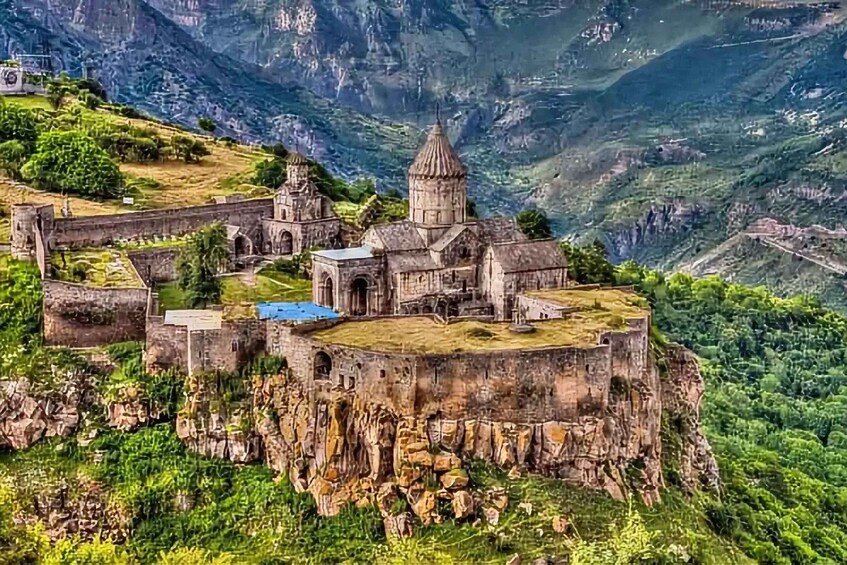 - Siste stopp er Tatev-klosteret, som er en perle i armensk arkitektur. Den ble grunnlagt på 800-tallet og har vært et viktig utdannings- og religionssenter i Armenia i mange århundrer. Vi skal ta taubanen Wings of Tatev, som er den lengste reversible taubanen i verden (5752 m), registrert i Guinness rekordbok.