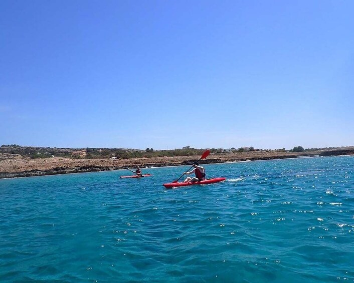 I tilfelle det er urolig vann, tilbyr vi som et alternativ en kajakktur langs østkysten av Kapp Greko-parken. Hvis de reisende ikke ønsker det, eller hvis det er urolig sjø også på østkysten, avlyser vi turen.