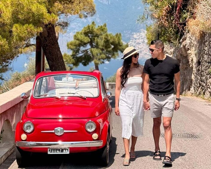 Convenient Pick-Up: We’ll arrange a comfortable pick-up from a designated location. Når du er om bord i den gamle Fiat 500, setter vi kursen for å utforske de mest pittoreske stedene langs kysten.