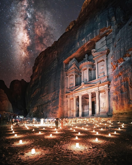 Dette alternativet inkluderer transport og overnatting i Amman, Petra og Wadi Rum Overnatting i Amman og Petra på 3-stjerners hotell med frokost, 1 natt i luksustelt i Wadi Rum (eget bad og AC) med middag og frokost.