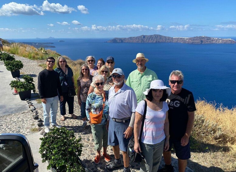 Ditt første stopp er Firostefani, et sted kjent for den berømte blå kuppelkirken, hvorfra du kan nyte den fantastiske utsikten over vulkansk kaldera.