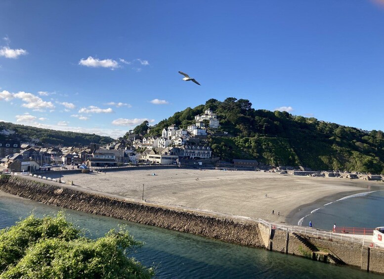 Et høydepunkt venter på East Looe Beach, en populær sandstrand i det sørlige Cornwall. Pust inn den salte sjøluften og forstå hvorfor skuespillerne og filmteamet valgte dette idylliske innspillingsstedet i Sørvest-England.