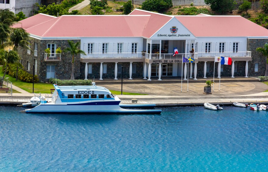 Du legger ut fra Simpson Bay Resort Marina tidlig om morgenen og kjører inn i Karibia om bord på en elegant, moderne passasjerferge som er designet for fart og stabilitet på vannet. Når du ankommer havnen i Gustavia, et knutepunkt for aktivitet på St. Barts, kan du nyte øyas sandstrender, noen gode restauranter eller det unike skjellmuseet på en dag fylt med severdigheter og opplevelser.