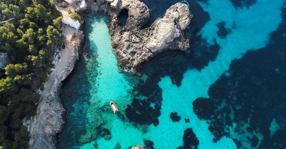 Underveis kan du se den intakte skjønnheten på denne delen av øya og de interessante maritime steinbruddene i Es Bauç, der de hugger ut sandsteinsblokker som skal fraktes til sjøs. Når du ankommer Es Màrmols, har du ca. 45 minutter til å ta et bad fra båten og nyte dette privilegerte stedet på øya.