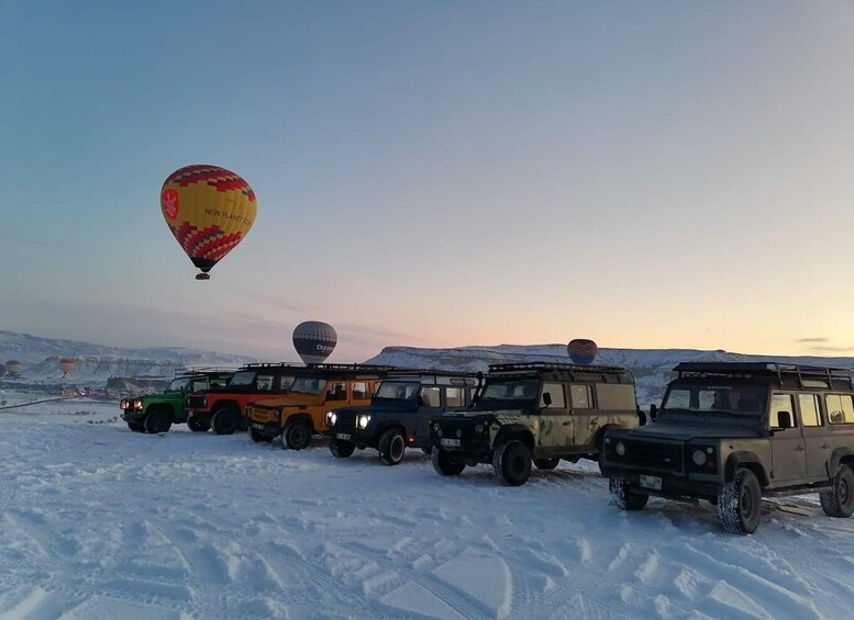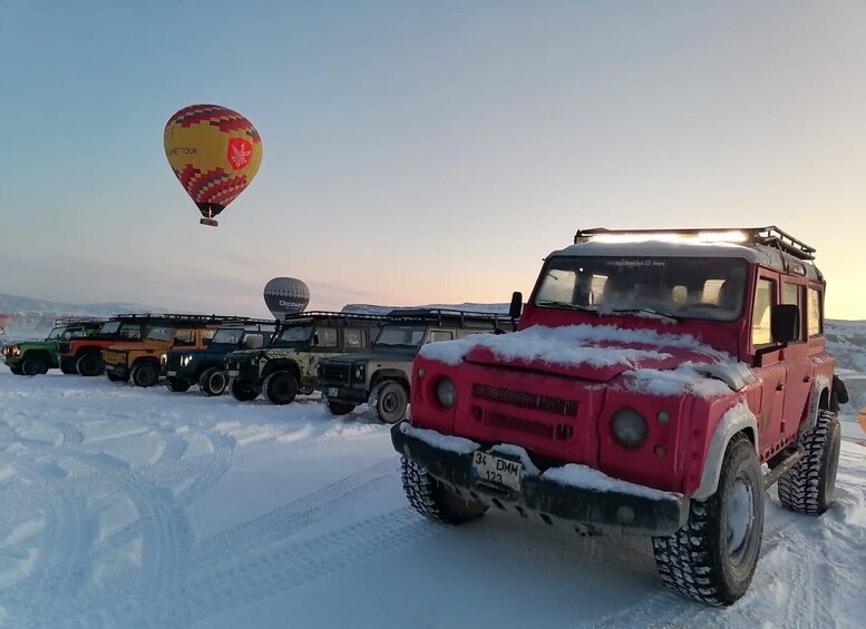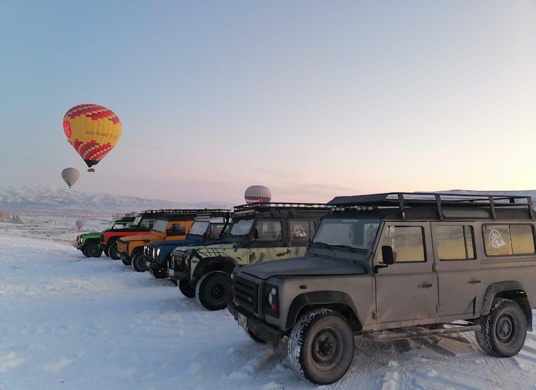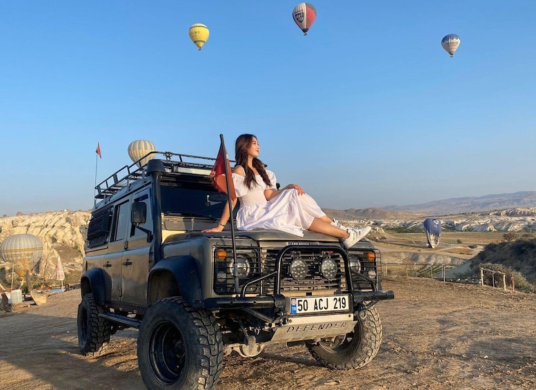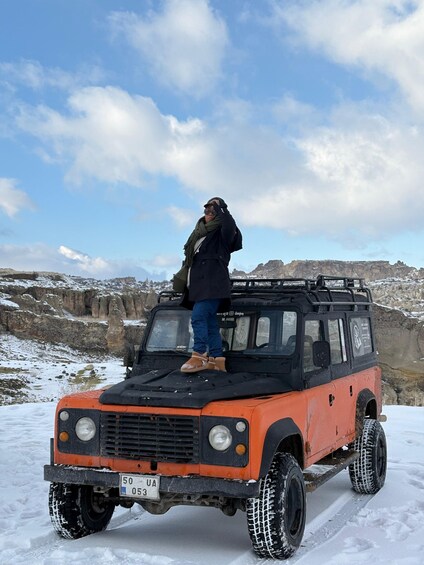 Turen du skal bli med på, koster per person. Du vil få en jeepsafariopplevelse med andre mennesker i en jeep. Opplev Kappadokias skjønnhet med en kjøretur i jeep. Se en gammel kirke som er hugget inn i klippene, og nyt den fantastiske panoramautsikten fra utsiktspunktet Ortahisar Panorama. Besøk eventyrpipene i